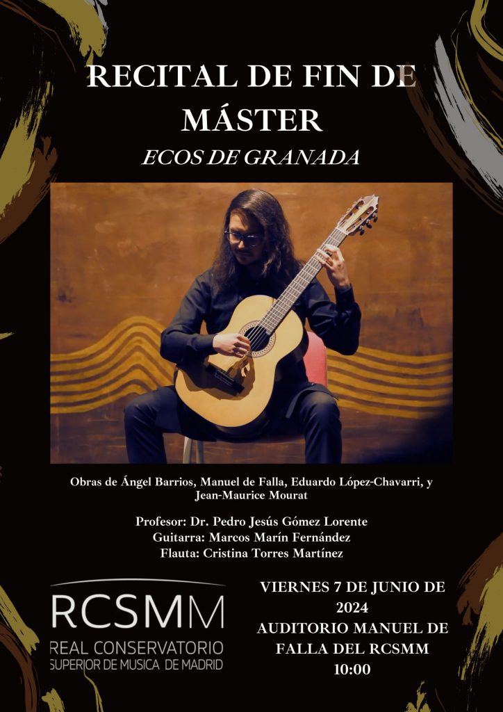 Este recital comprende obras de mi programa Ecos de Granada, y en esta ocasión estaré acompañado de la flautista Cristina Torres.